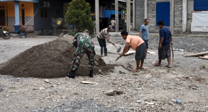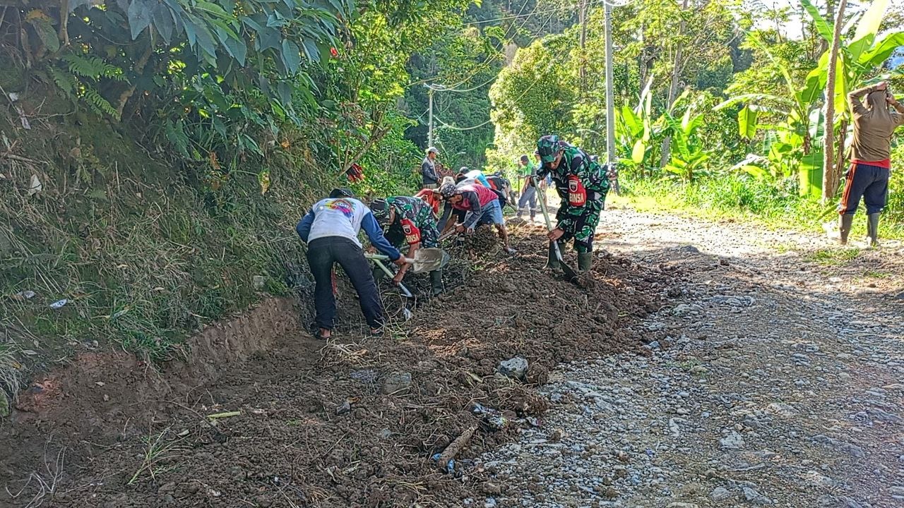 Enrekang – Kodim 1419 Enrekang Koramil 03/Baraka dan aparat desa melaksanakan kegiatan karya bakti di Dusun Ponda Desa Ledan Kecamatan Buntu Batu Kabupaten Enrekang….