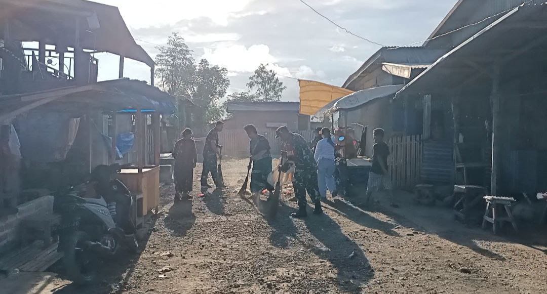 Jeneponto – Dalam rangka menciptakan lingkungan pasar yang bersih dan nyaman Babinsa Koramil 1425-01/Binamu Kodim 1425 Jeneponto Bersama Warga melaksanakan Karya Bakti Pembersihan Pasar….