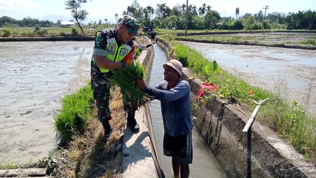 Nagan Raya, Kedekatan Babinsa Koramil 02/Seunagan Kodim 0116/Nagan Raya, bersama petani di wilayah binaan tampak kompak, dimana Babinsa terjun langsung ke sawah membantu mengangkat…