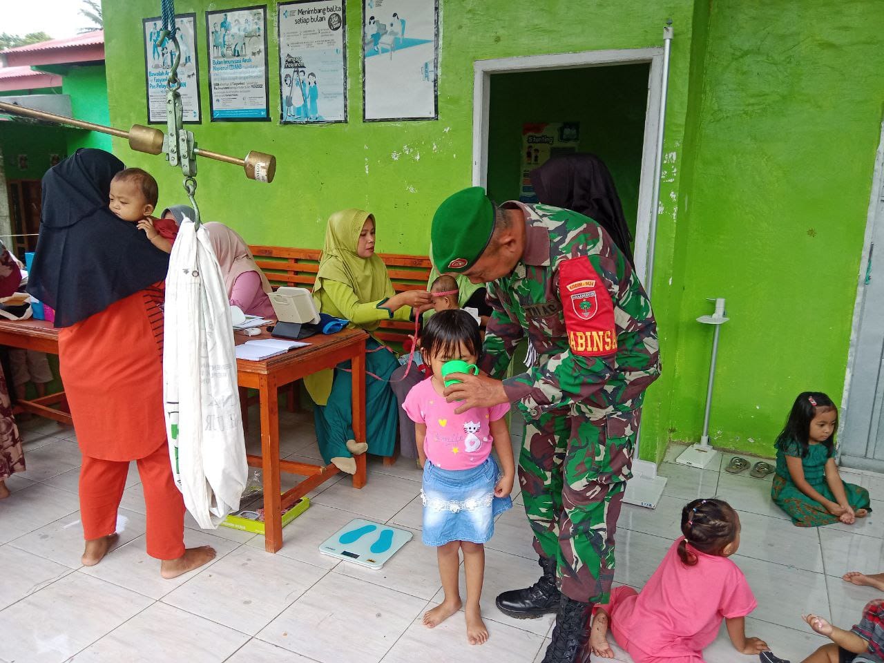 SINJAI. Babinsa Desa Palangka, Koramil 1424-05/Sinjai Selatan Serda Asri Majid, mendampingi Pusat Kesehatan Masyarakat (PKM) Samaenre dan kader Posyandu dalam kegiatan penimbangan berat dan…