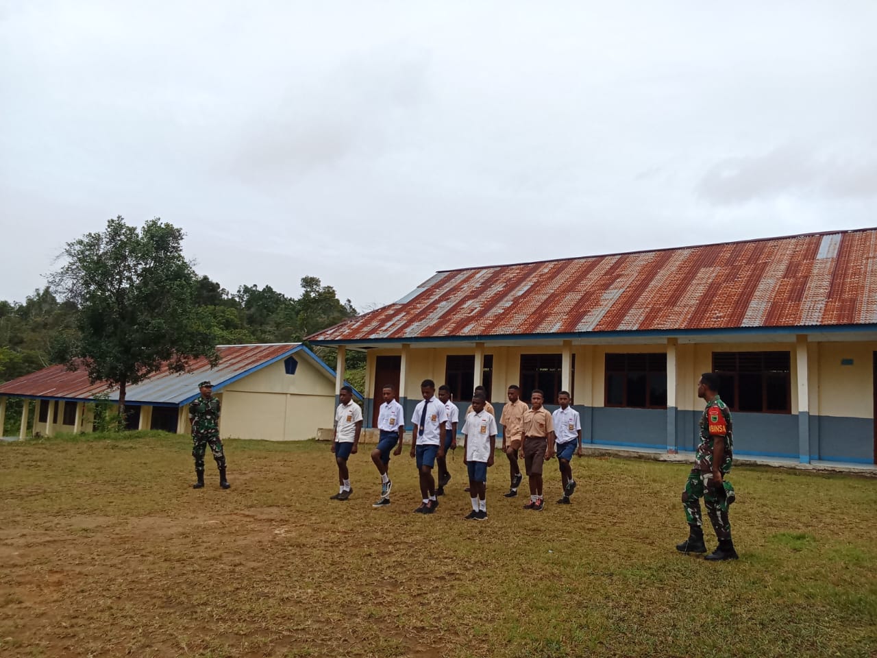 Pendim1809maybrat- Babinsa Satgaster Kodim 1809/Maybrat Dpp Sertu Viktor memberikan materi Bela Negara (Belneg) dan PBB kepada Siswa SMA NEGERI 1 Aitinyo. Distrik Aitinyo, Kab….