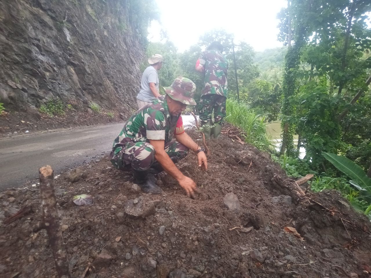 SINJAI. Personel Koramil 1424-04/Sinjai Timur Kodim 1424/Sinjai bersama masyarakat melaksanakan kegiatan karya bakti penanaman bibit pohon Bitti di kawasan yg rawan longsor Kec Sinjai…