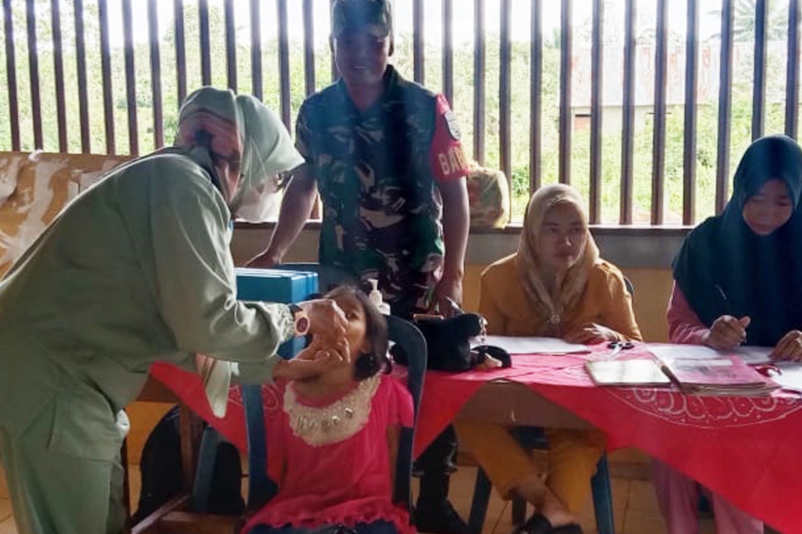 Babinsa Koramil 1707-05/Ulilin Kodim 1707/Merauke Sertu Mas Widodo melaksanakan pendampingan sekaligus membantu petugas kesehatan Puskesmas Ulilin dalam melaksanakan kegiatan pemberian Vaksin Polio dan pemberian…