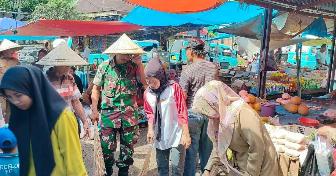 SINJAI. Personel Pos Ramil Tellulimpoe Kodim 1424/Sinjai bersama masyarakat melaksanakan kegiatan karya bakti pembersihan pasar tua di Desa Tellulimpoe Kec. Tellulimpoe Kab. Sinjai, Sabtu…