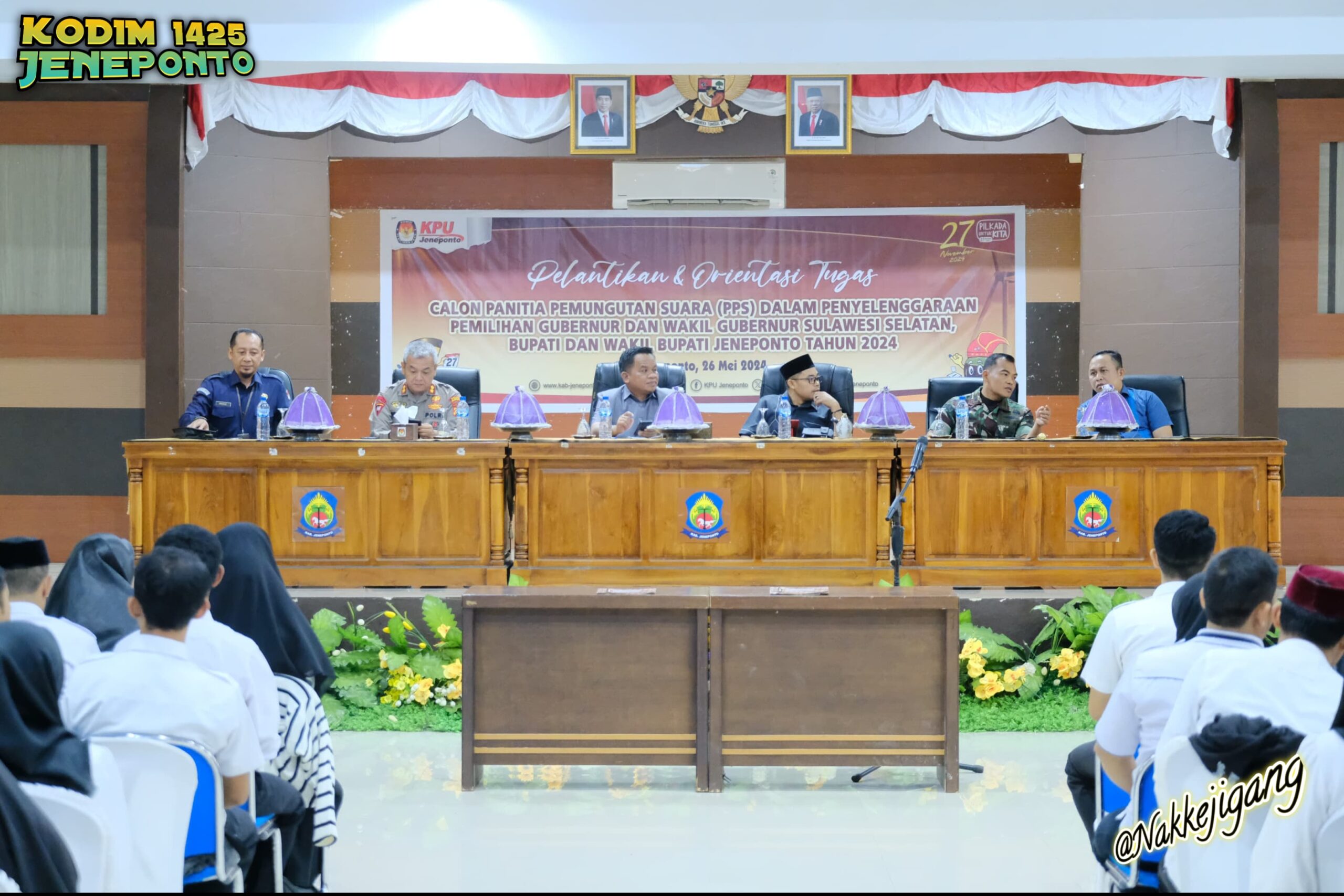 JENEPONTO – Komandan Kodim 1425 Jeneponto Letkol Inf Muhammad Amin, S.IP., menghadiri Pelantikan, Pengambilan Sumpah /Janji dan Penandatanganan Pakta Integritas Anggota Panitia Pemungutan Suara…