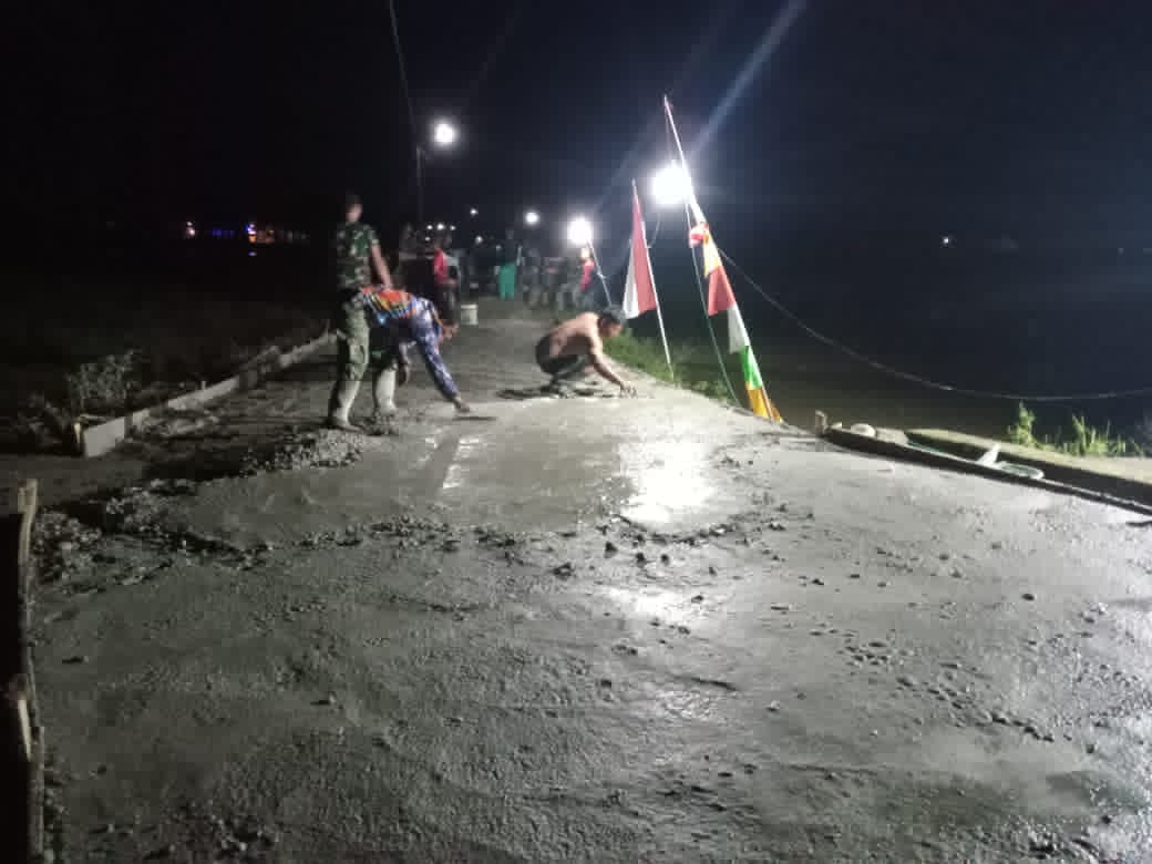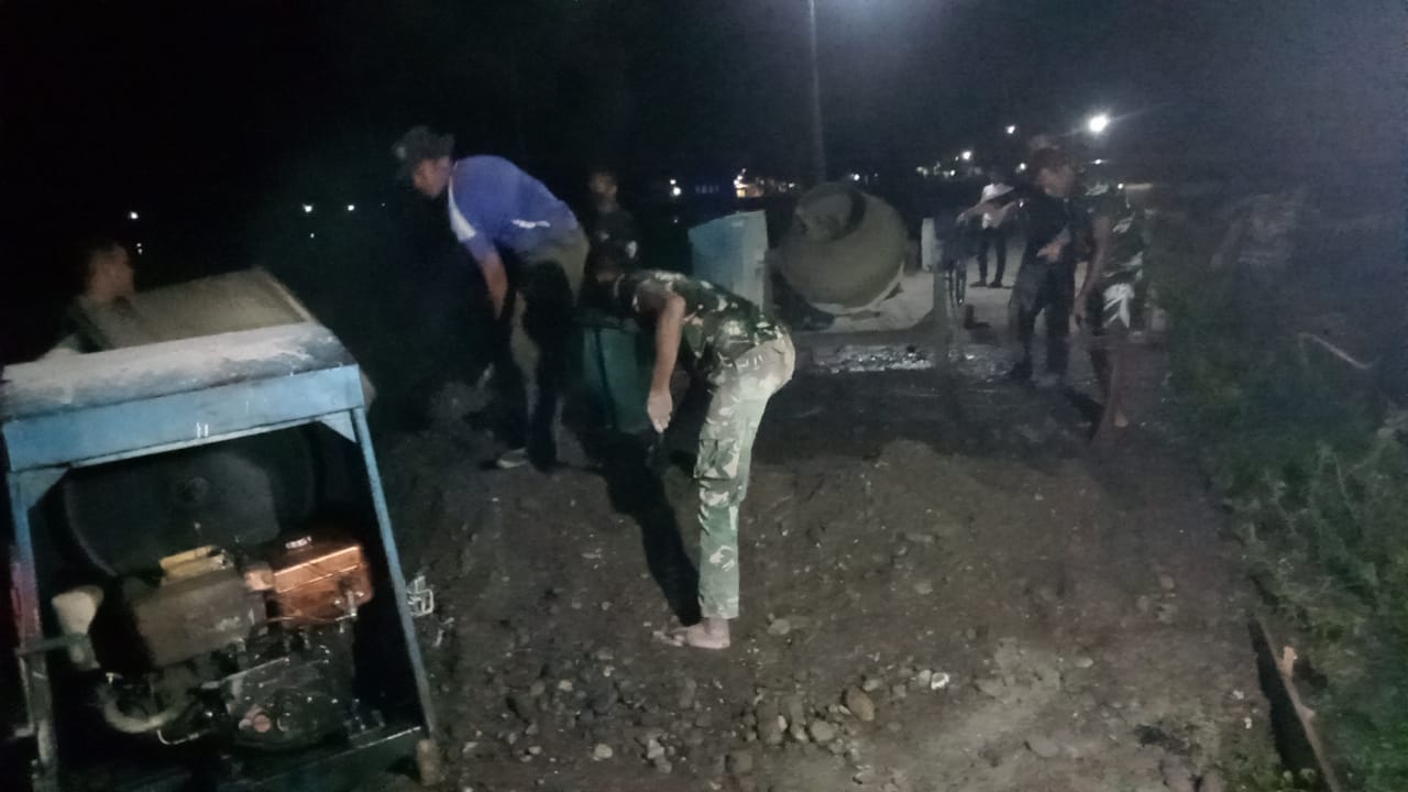 Nagan Raya, Satgas TNI Manunggal Membangun Desa (TMMD) Reguler ke 120 Kodim 0116/Nagan Raya melanjutkan kegiatan sasaran fisik pengecoran rabat beton di Desa Kota…