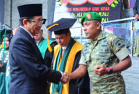 BONE — Komandan Kodim 1407/Bone, Letkol Inf Laode Muhammad Idrus, menghadiri Sidang Senat Terbuka Institut Agama Islam Negeri (IAIN) Bone yang dirangkaikan dengan pengukuhan…