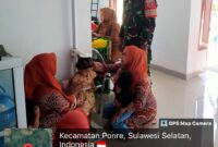 BONE – Babinsa Koramil 1407-10/Ponre Serda Iwan setiawan melaksanakan pendampingan Posyandu yang diselenggarakan oleh bidan desa bersama Kader Posyandu yang berlokasi di Poskesdes dusun…