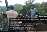 Bone – Babinsa Koramil 1407-05/Ulaweng Serda Sumardi, melaksanakan pendampingan pemantauan pemeliharaan lahan jagung milik warga binaan di Dusun Barang, Desa Waemputange, Kecamatan Amali, Kabupaten…