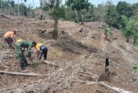 Bone – Babinsa Koramil 1407-09/Lapri, Serma Rustan, melaksanakan gotong royong bersama warga dalam rangka pembersihan semak belukar yang menghalangi akses jalan raya di Desa…