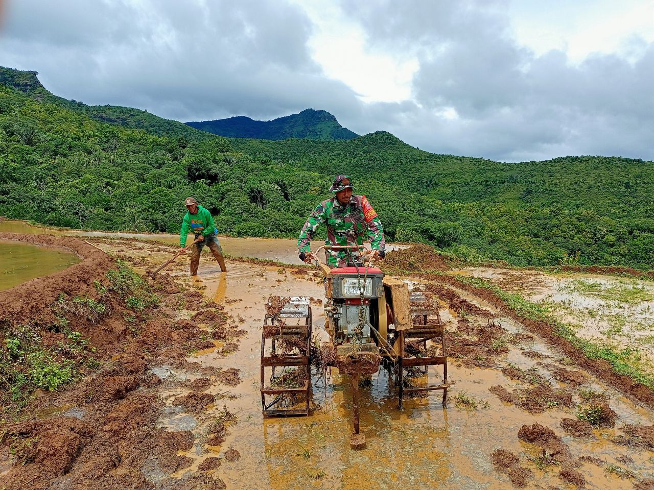 BONE – Serdan Zain Anggota Koramil 1407-08/Lamuru turun langsung ke sawah membantu petani membajak sawah dengan menggunakan alat mesin Hand Traktor, berlokasi di Desa…