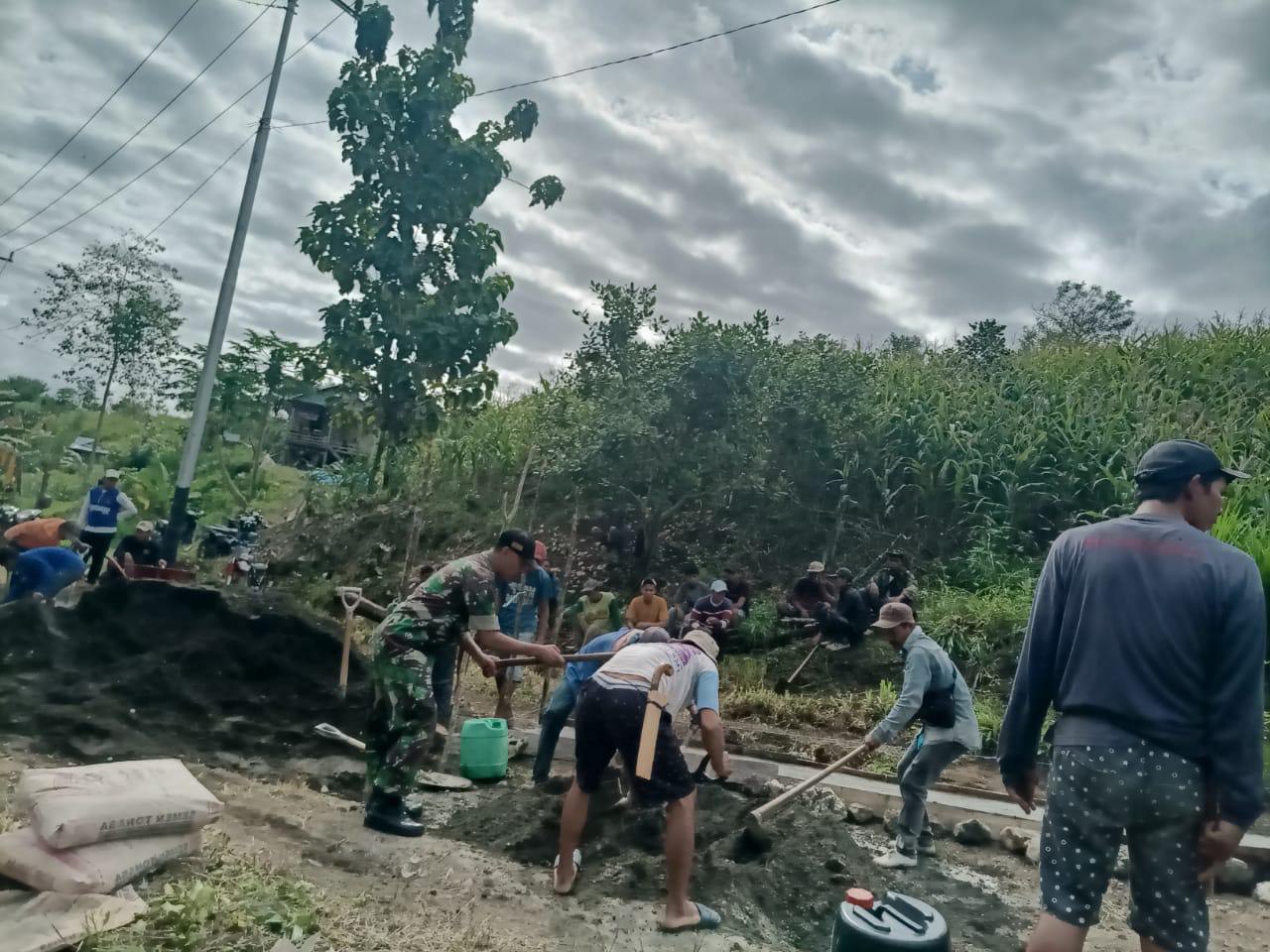 BONE – Guna terciptanya sinergitas TNI bersama Rakyat, Babinsa Koramil 1407-08/Lamuru Peltu Dio Suseno bersama warga binaan gotong royong pengecoran jalan di Dusun Kampung…