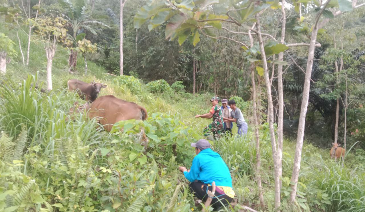 BONE – Babinsa Koramil 1407-20/Bontocani Serda Ahmad Riady bersama warga binaan mengamankan sejumlah hewan ternak yang berkeliaran bebas di perkebunan masyarakat di Dusun Lalakke,…