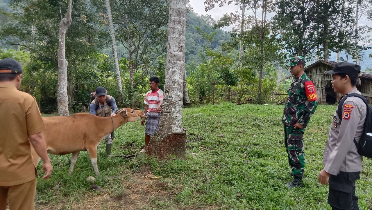 BONE – Bersama Pemdes Desa Pattuku, Bhabinkamtibmas Polsek Bontocani, Babinsa Koramil 1407-20/Bontocani Rem 141/TP Sertu Haruddin Lakukan pengamanan penyuntikan Vaksin PMK tahap 2 kepada…