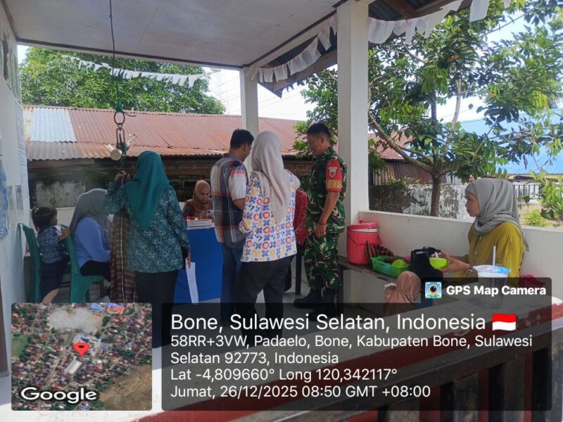 Bone – Babinsa Koramil 1407-15/Mare, Serma Supriadi Rasyid, melaksanakan pendampingan kegiatan Posyandu Balita serta memberikan pemahaman kepada para orang tua balita yang mengikuti pelayanan posyandu, bertempat di Kelurahan Padaelo, Kecamatan Mare, Kabupaten Bone. Jumat siang (26/12/25).