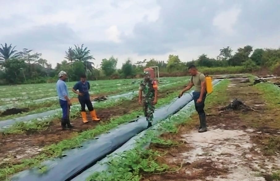 Seperti pendampingan yang dilakukan Babinsa Koramil 0907/04 Tarut Koptu Junjungan Simanjutak dalam membantu perawatan semangka dari hama milik Rudi (48) warga RT.01 Kel.Juata Permai Kec.Tarakan Utara,Jumat(17/11/2023).