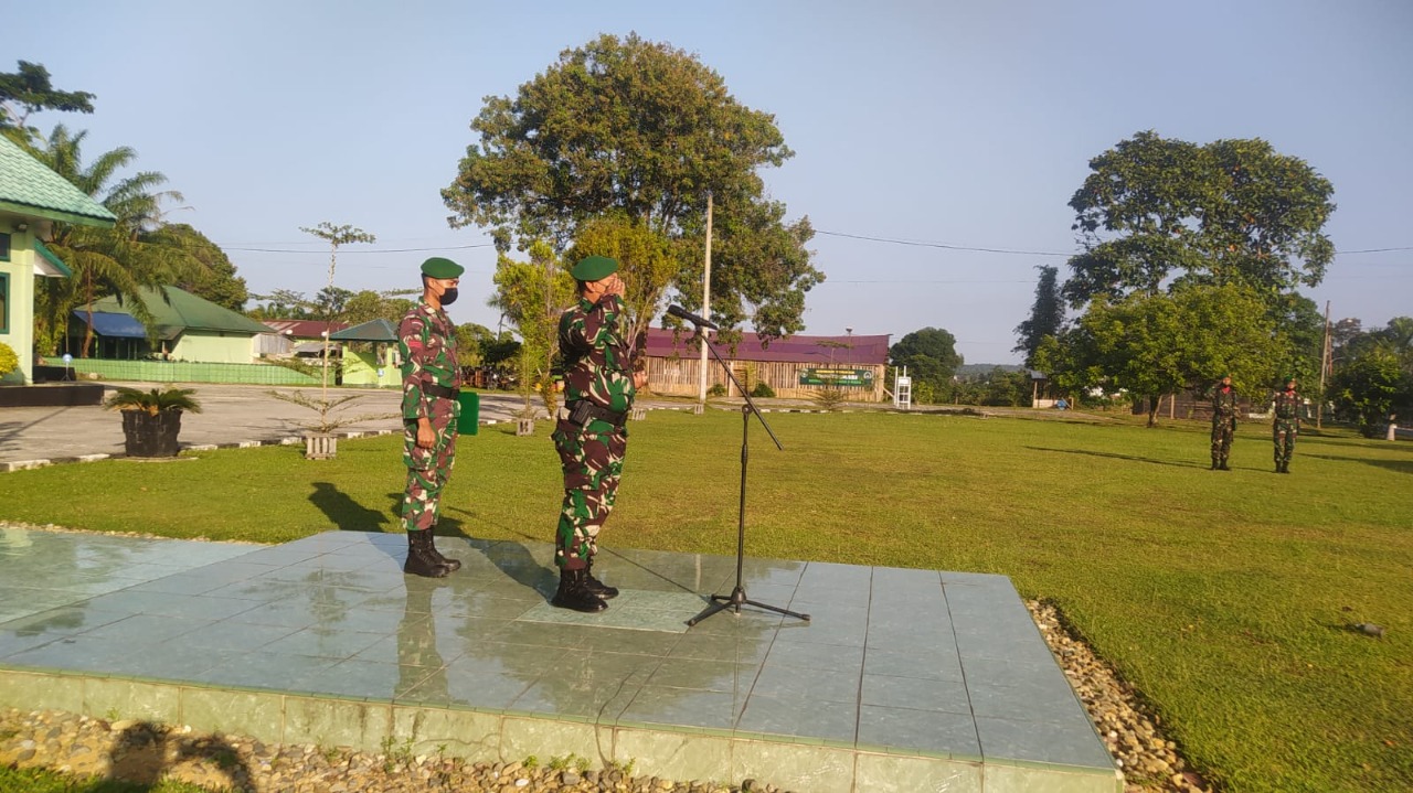 Nagan Raya – Personel Komando Distrik Militer (Kodim) 0116/Nagan Raya melaksanakan Upacara Bendera rutin setiap tanggal 17 dan diundur hingga hari Senin di Lapangan Upacara Makodim 0116/Nagan Raya, Senin (18/07/2022).