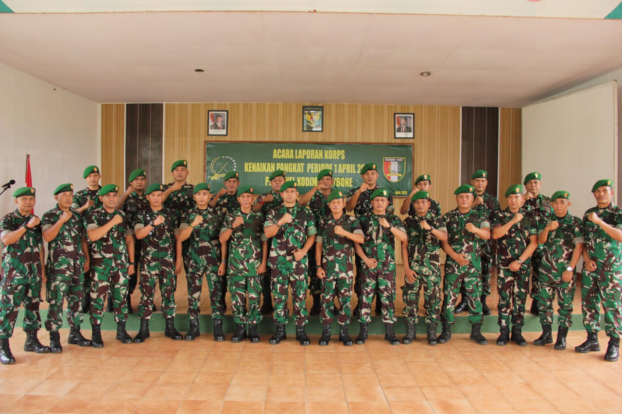 Penganugrahan kenaikan pangkat itu diberikan kepada prajurit TNI Kodim 1407/Bone yang terdiri dari 1 Perwira Menengah, 26 Bintara dan 5 Tamtama yang jumlah keseluruhanya 32 orang. (Pendim 1407/Bone)