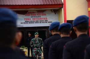 Bertindak sebagai pimpinan apel Dandim 1407/Bone Letkol Inf. Moch. Rizqi Hidayat Djohar bersama Danyon C Pelopor Kompol Nur Ichsan S.Sos.