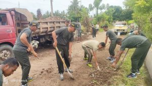 Kegiatan gotong-royong ini merupakan sarana kebersamaan antara Babinsa dan warga demi membantu tercapainya kenyamanan bagi pengendara roda empat maupun roda dua.,”Ujarnya.