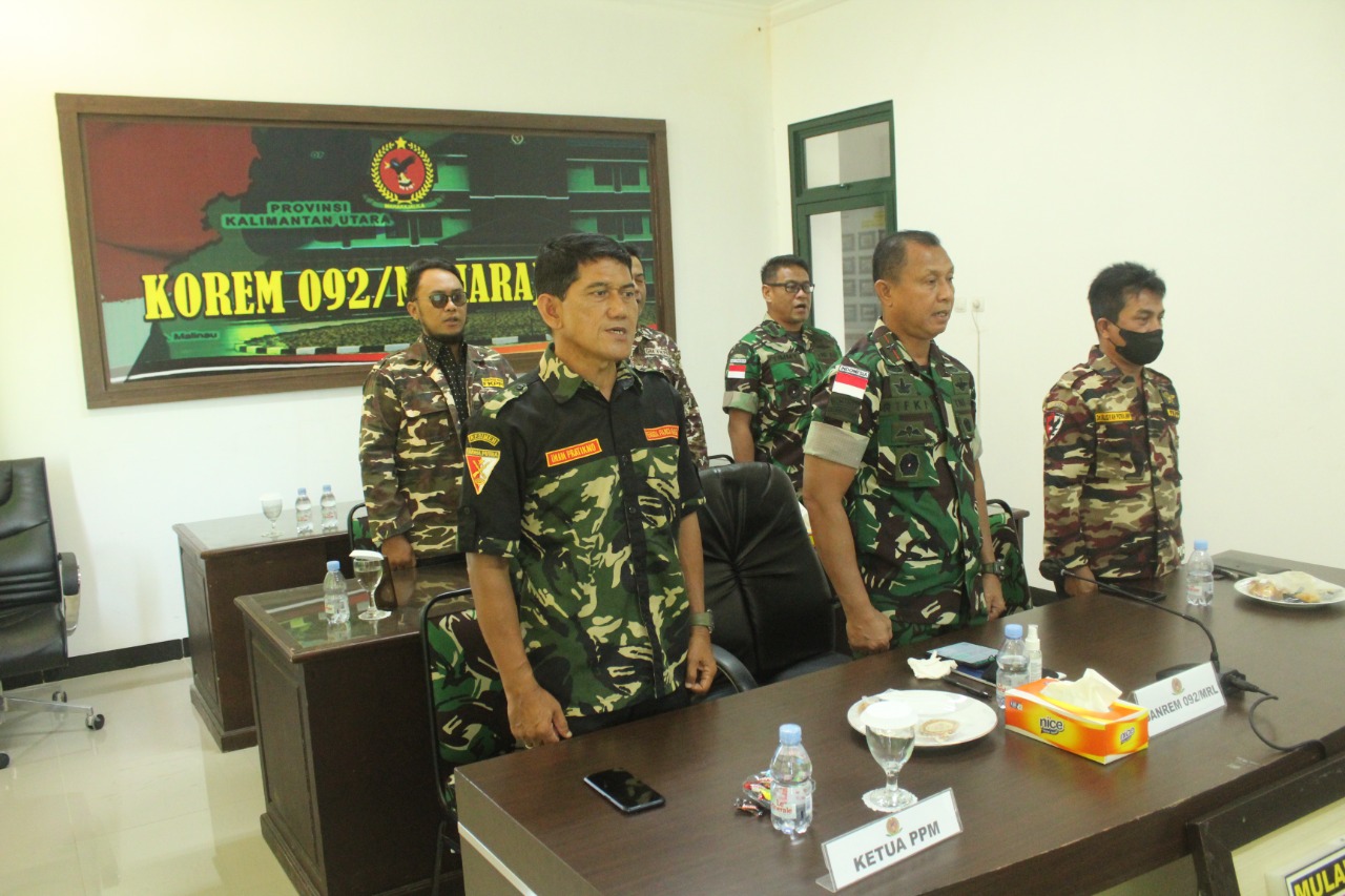 Tanjung Selor – Komandan Korem (Danrem) 092/Maharajalila Brigjen TNI Rifki, S.E., M.M. bersama Kasiter Korem 092/Maharajalila Kolonel Timmy Prasetya H., S.Sos., KB FKKPPI Dr. Ali Sp.OG., GM FKPPI Bpk. Juliasnyah dan Bpk. Yogi S.Pd., serta PPM Bpk. Imam Pratikno. mengikuti kegiatan vicon komsos dengan KBT Tni yang dipimpin Kepala Staf TNI Angkatan Darat (Kasad) Jenderal Dudung Abdurachman, S.E., M.M., Senin (31/5/2022).