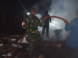 BONE – Babinsa Koramil 1407-11/Barebbo Serda Ahmad ikut membantu pemadaman kebakaran rumah/kandang sapi milik sdr Amirwan umur 31 tahun, agama Islam, pekerjaan petani yang beralamatkan di Dusun 2, Desa Sugiale, Kecamatan Barebbo, Kabupaten Bone. Kamis (09/02/2023).