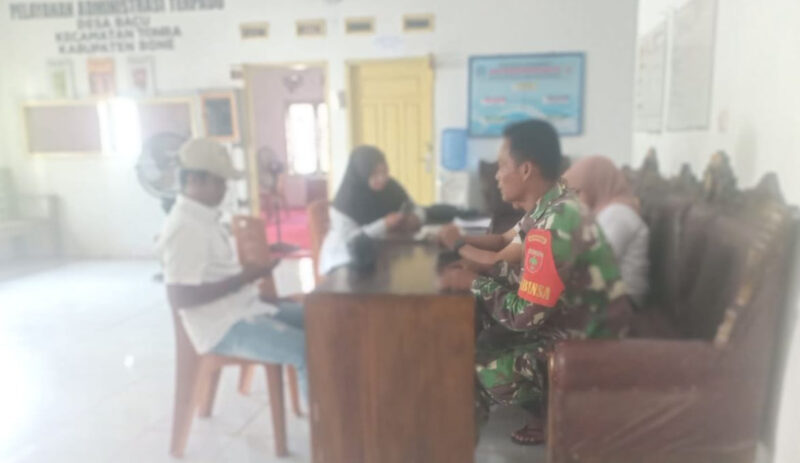 BONE – Sertu Suwanto Babinsa Koramil 1407-16/Tonra melaksanakan Komunikasi Sosial (Komsos) bersama aparat pemerintah di Kantor Desa Bacu, Kec. Tonra, Kab. Bone. Jumat (20/02/26)