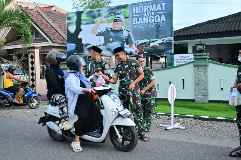 Dengan penuh senyum dan sapa hangat, Dandim bersama jajaran prajurit menyerahkan langsung takjil kepada masyarakat. Momen tersebut tidak hanya menjadi ajang berbagi makanan berbuka, tetapi juga mempererat tali silaturahmi antara TNI dan warga di bulan penuh berkah ini.