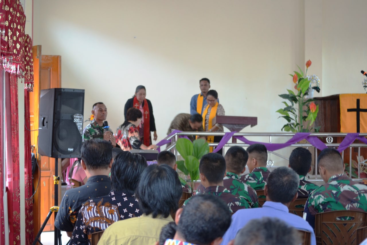 Adapun anggota satgas TMMD yang ikut melaksanakan ibadah Minggu yaitu Letda Inf Simon Dasmasela, Kopka Gusti, Pratu Andris Tumuju, Prada Veron Andreas Rotikan, Prada Gilbert Soleman David, Prada Reza Pahlevi Singkow, Pratu Fredy Mansur, Prada Yoel Kandar, Prada Yehezkia Dimara dan Prada Panawar.