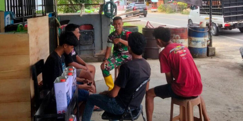 Bone – Serda Erwin Babinsa Koramil 1407-01/Ajangale melaksanakan Komunikasi Sosial (Komsos) bersama para pemuda di Desa Welado, Kec. Ajangale, Kab. Bone. Jumat (06/03/26).