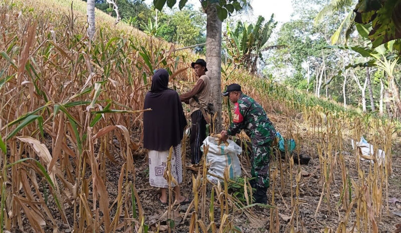 BONE – Babinsa Koramil 1407-08/Lamuru Serka Amir Hamsah melaksanakan Komunikasi Sosial (Komsos) sekaligus membantu petani dalam proses panen jagung di Desa Barakkae, Kec. Lamuru, Kab. Bone. Selasa (24/02/26).
