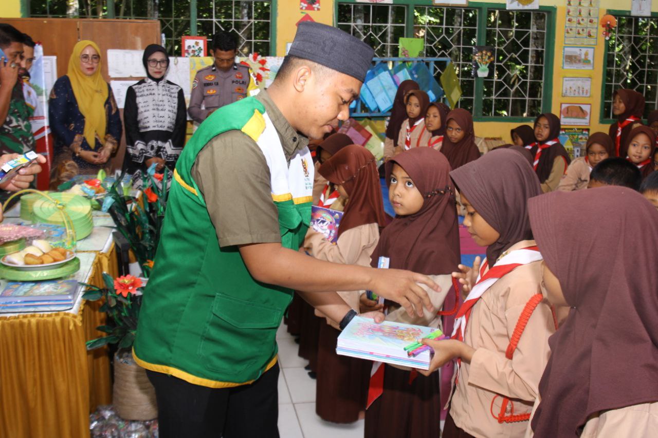 BONE – Kodim 1407/Bone bersama Baznas Bone laksanakan pembagian Makanan Bergizi, Buku dan Alat tulis kepada siswa – siswi SD Negeri 207 Apala, Kel. Apala, Kec. Barebbo, Kab. Bone. Jum’at (25/04/2025).