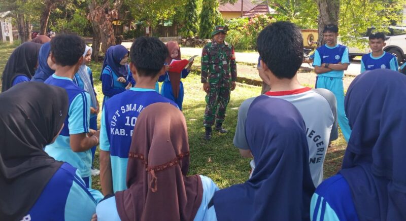 BONE – Babinsa Koramil 1407-16/Tonra Kopda Andik Siswanto berikan edukasi kepada para siswa Madrasah Tsanawiyah (MTS) Bulu-Bulu tentang pentingnya rasa cinta tanah air. Desa Bulu-Bulu, Kec. Tonra, Kab. Bone. Jumat (07/11/25)