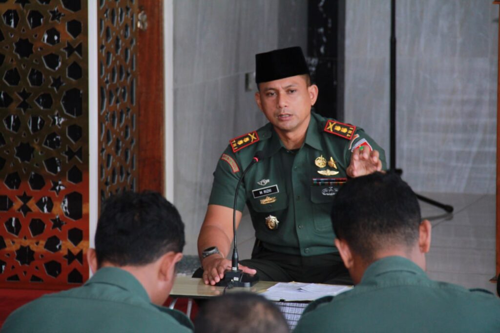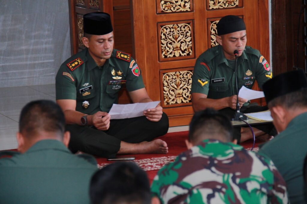 Watampone – Prajurit dan PNS Kodim 1407/Bone Rem 141/Tp melaksanakan kegiatan doa bersama yang diawali Pembinaan Mental langsung dari Dandim 1407/Bone Letkol Inf. Moch. Rizqi Hidayat Djohar dan dilanjutkan pembacaan asmaul husna, di Masjid Manunggal Makodim 1407/Bone, Jalan Lapatau, Kel. Manurunge, Kec. Tanete Riattang, Kabupaten Bone. Senin (31/07/23).