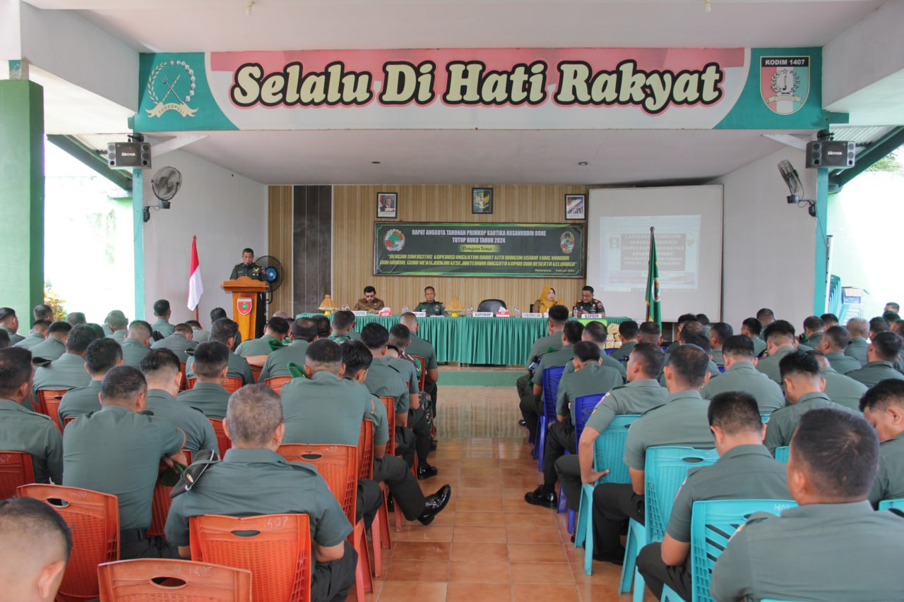 BONE – Kodim 1407/Bone menggelar Rapat Anggota Tahunan (RAT) Tutup Buku Tahun 2024 Primer Koperasi Kartika Hasanuddin Bone, di Aula Tauwarani Makodim 1407/Bone, Kel. Manurunge. Selasa (04/02/25).