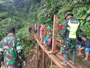 Sebagaimana yang di sampaikan oleh Kepala Desa Sadar di sela-sela kegiatan tersebut “Hari ini kami bersama Personel Koramil Lamuru memperbaiki jalan yang longsor, kita menggunakan alat seadanya dan kayu untuk menopang tanah sehingga tidak longsor lagi”.