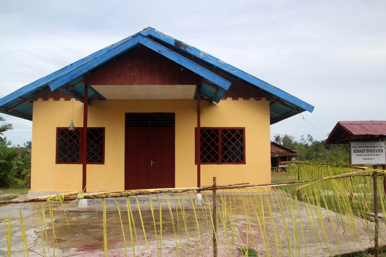 Selain membangun 20 unit rumah masyarakat, personel Satgas TMMD Ke-113 juga membangun 1 unit rumah untuk kegiatan Posyandu bagi masyarakat Vyer dan melaksanakan pengecatan Gereja Evata Vyer bertempat di Kampung Vyer Distrik Ti Zain Kabupaten Mappi. Rabu (8/6/22).