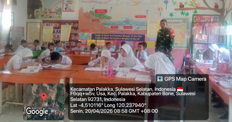 Bone – Babinsa Koramil 1407-21/Palakka Koptu Semaila melaksanakan pengawasan proses belajar mengajar siswa-siswi SD Negeri 28 yang bertempat di Desa Usa, Kec. Palakka, Kab. Bone. Senin siang (20/04/26).