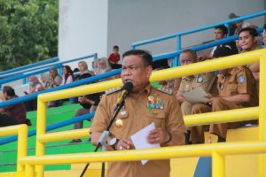 BONE – Dandim 1407/Bone Letkol Inf. Moch. Rizqi Hidayat Djohar hadiri kegiatan Pelantikan dan Pengambilan Sumpah/Janji Panitia Pemungutan Suara (PPS) untuk Pemilihan Umum (Pemilu) Serentak Tahun 2024. Di Gor Lapatau Watampone. Selasa (24/01/23).