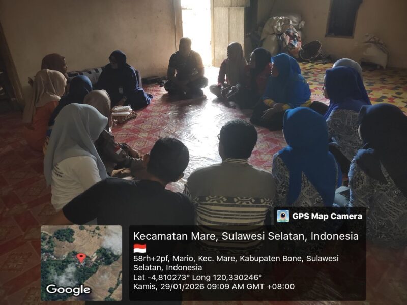 BONE – Babinsa Koramil 1407-15/Mare Serka Ginanjar menjalin interaksi dengan melaksanakan komsos bersama Ibu-ibu PKK Desa Mario, Kecamatan Mare, Kabupaten Bone. Kamis Siang (29/01/26).