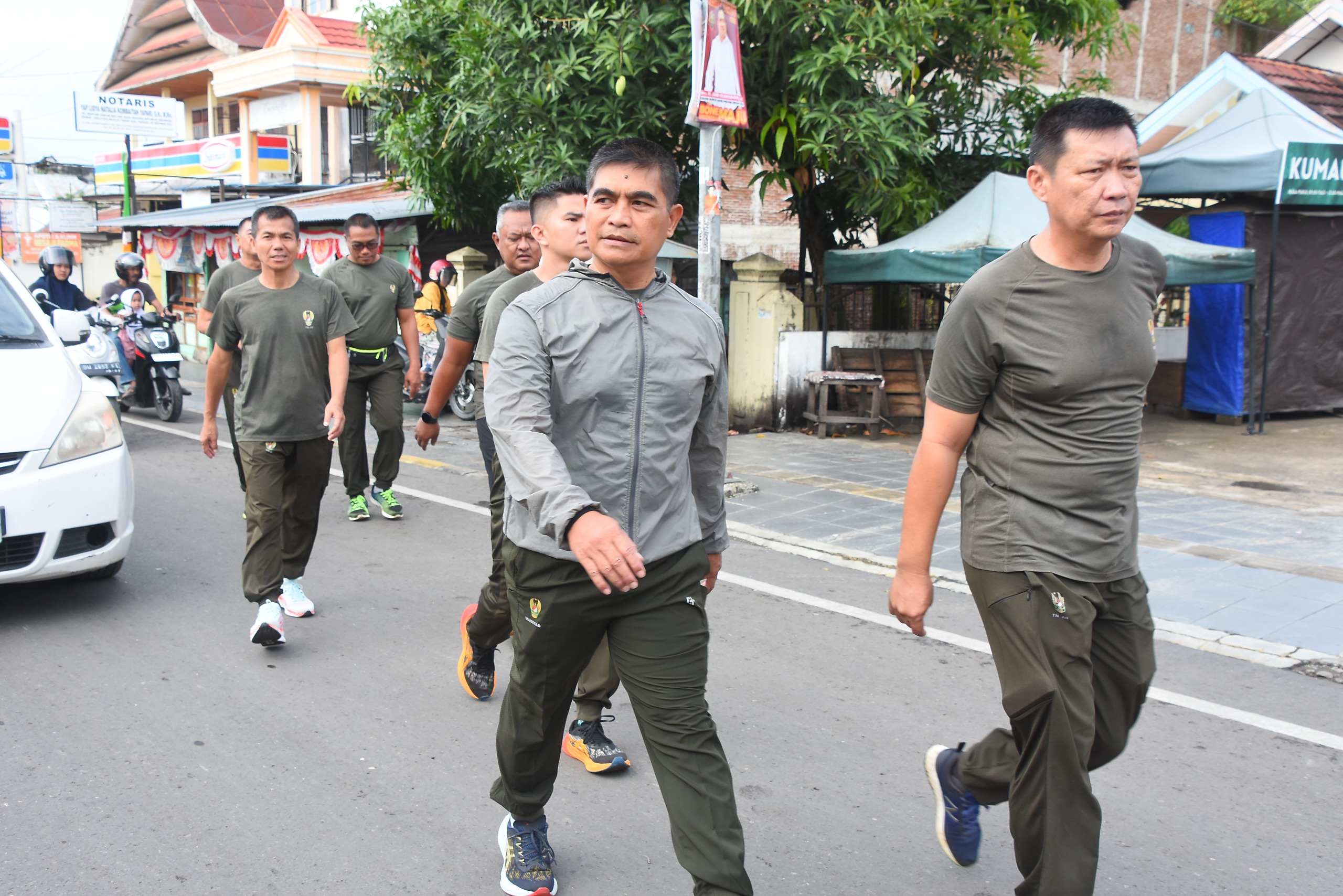 Watampone – Bertempat dilapangan Apel Makorem 141/Toddopuli, Personel Korem 141/Tp melaksanakan apel pagi yang dilanjutkan dengan Senam SKJ 88, Jalan Santai mengelilingi Kota Watampone dengan Jarak 5 Km, Jum’at (23/08/2024).