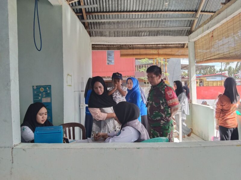 Dalam kegiatan ini, Serda Nasruddin turut mendampingi tenaga kesehatan dan memberikan motivasi kepada warga yang hadir, terutama ibu-ibu yang sedang hamil dan memiliki balita.