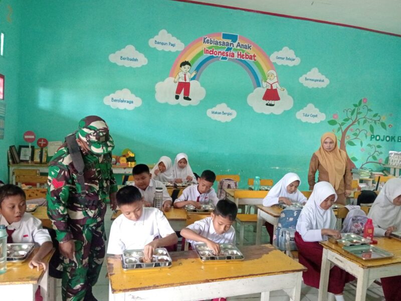 BONE – Babinsa Koramil 1407-07/Tanete Riattang Kopka Muhammad Yusri dampingi pendistribusian dan pembagian program makan gratis bagi siswa SD Inpres 12/79 Macanang di Kel. Bulutempe, Kec. Tanete Riattang Barat, Kab. Bone. Kamis Siang (15/01/26).
