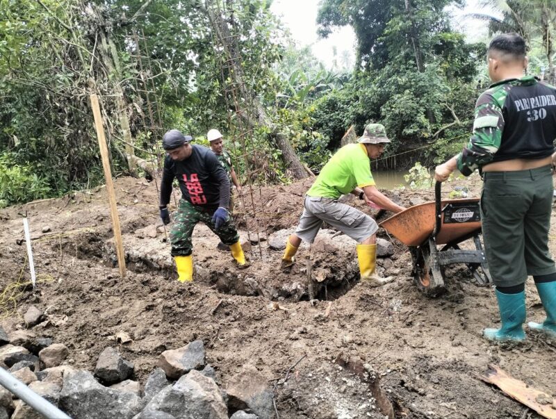 BONE – Personel Koramil 1407-06/Awangpone bersama masyarakat kembali melaksanakan kegiatan gotong royong dalam rangka melanjutkan pembangunan Jembatan Perintis Garuda Tahap III yang berlokasi di Kelurahan Maccope, Kecamatan Awangpone, Kabupaten Bone. Minggu (12/04/26).