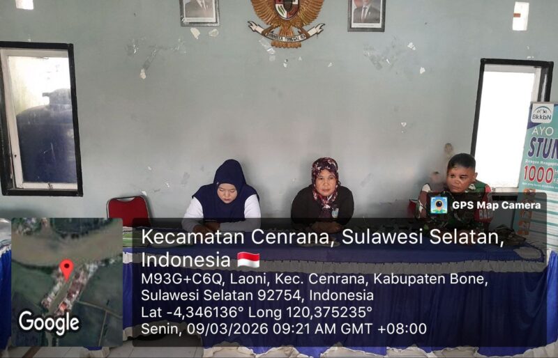 Bone – Babinsa Koramil 1407-03/Cenrana, Sertu M. Yunus melaksanakan pendampingan sosialisasi Program Keluarga Harapan (PKH) di Desa Laoni, Kec. Cenrana, Kab. Bone. Senin siang (09/03/26).