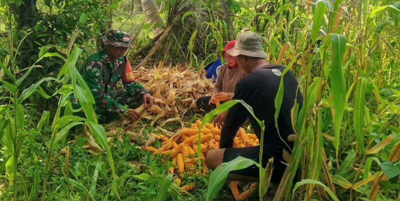 BONE – Babinsa Koramil 1407-15/Mare Serda Irpan melaksanakan komunikasi sosial (Komsos) sekaligus membantu petani  panen jagung di Desa Mattampa Walie, Kec. Mare, Kab. Bone. Kamis (12/03/26).