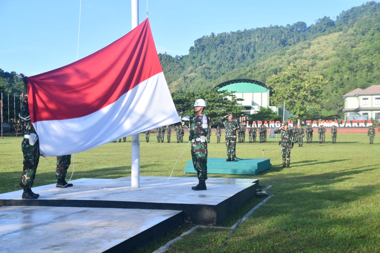 Mamuju – Danrem 142/Tatag Brigjen TNI Farouk Pakar., S.Pd., M.Han bertindak selaku Irup pada upacara bendera tanggal 17 Juni 2022 di lapangan Tammajarra Korem 142/Tatag jl. Abd. Malik Pattana Endeng Mamuju Prov. Sulawesi Barat. Jumat ( 17/6/22 )