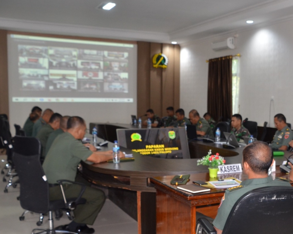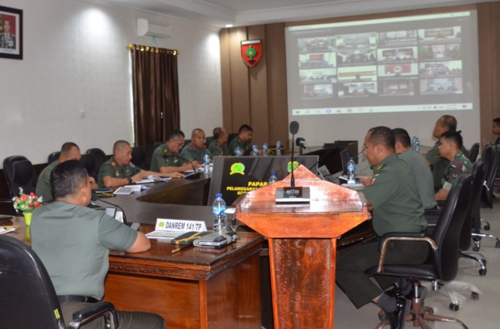 Watampone – Brigjen TNI Budi Suharto, S.I.P, M.Si. Danrem 141/Tp, memberikan Jam Komandan secara virtual kepada seluruh delapan belas Dandim jajaran Korem 141/Tp, bertempat diruang vicon M Yusuf Makorem 141/Tp, Senin (07/08/2023)