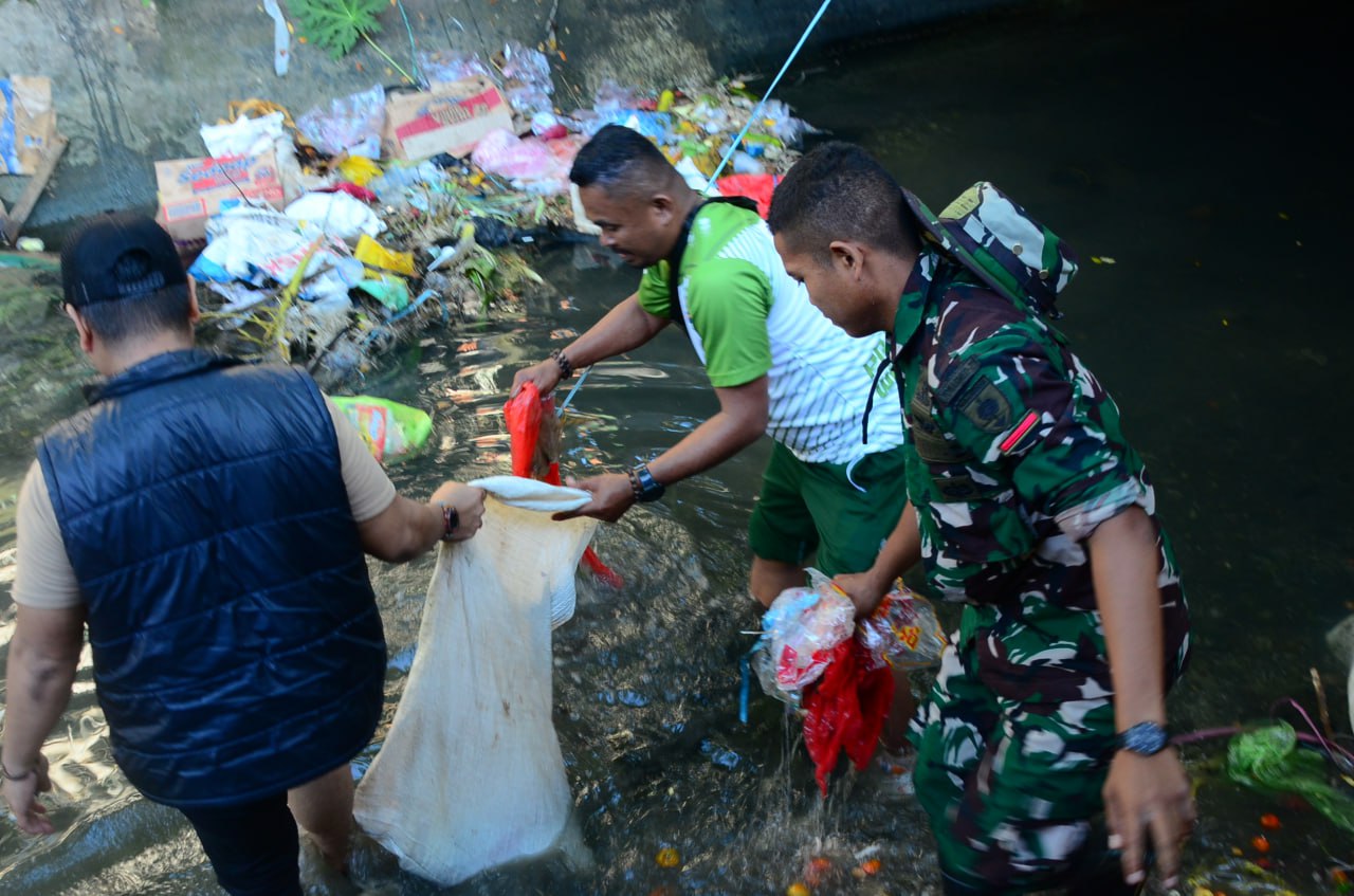 “Saya harapkan kita bergotong royong bekerja dengan ikhlas, jangan ada yang takut kotor dari sampah, baik itu sampah dari selokan atau sungai”, katanya.