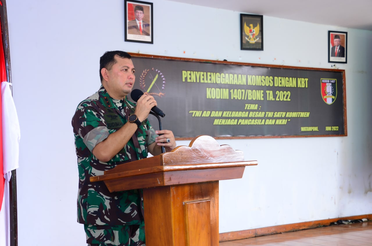 Acara Komsos yang di gelar kali ini menyusun tema “TNI AD Dan Keluarga Besar TNI Satu Komitmen Menjaga Pancasila Dan NKRI” dengan tujuan untuk meningkatkan hubungan silaturahmi antara anggota TNI yang masih aktif dengan keluarga Besar TNI (KBT), serta mempererat hubungan kekeluargaan sebagai wahana untuk saling memberikan informasi tentang perkembangan lingkungan di wilayah Kodim 1407/Bone.